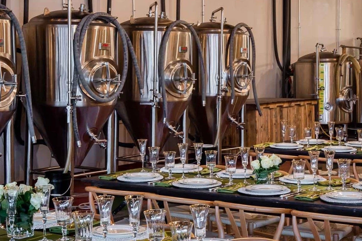Our modern brewery space can hold up to 150 guests and features 7 beautiful brewing tanks and 10 taps.